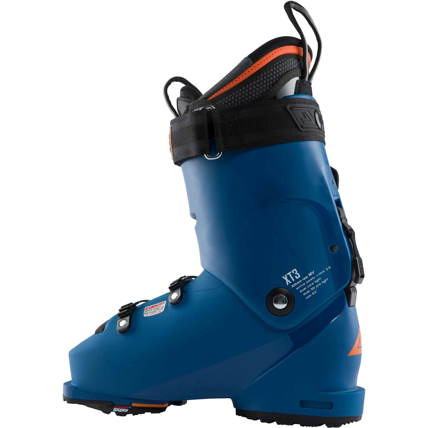 Mød XT3 Free 110 MV. Ligesom sin stivere bror (XT3 Free 120) er denne skistøvle præstationsfokuseret og udstyret med Langes’ funktioner: den nye Active Power V-Lock og Friction Free Hinge, alle XT3’er tilbyder ubesværet bevægelighed, og denne Free 110 har 53° bevægelsesområde på vej op. På grund af den lavere flexrate kræver støvlen mindre anstrengelse for at styre den og er derfor mere tilgængelig end f.eks. en XT3 Free 120.